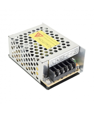 Realizzato con scocca in allumino, è un alimentatore per uso professionale capace di alimentare dispositivi come telecamere o impianti di illuminazione a LED in modo continuo.