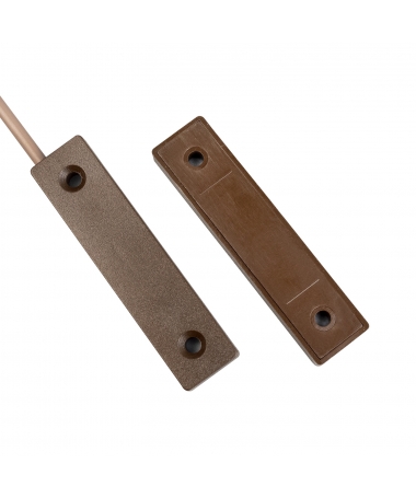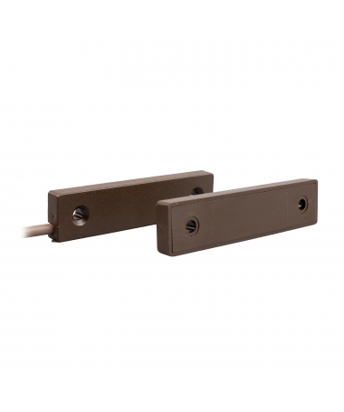 VG-CS10LPM è un contatto magnetico NC (con anta chiusa) per installazioni in superficie di grande portata conforme con la norma europea EN50131-2-6 grado 2 classe ambientale II. Realizzato in plastica di colore marrone, ha un profilo estremamente ridotto sottile e stretto che agevola le installazioni su infissi in materiale ferroso. Fornito con biadesivo.