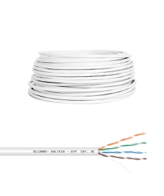 Matassa LAN da 50 metri, compatibile con gli standard di Categoria Cat. 5, realizzata con conduttori rivestiti in alluminio e rame a traccia.