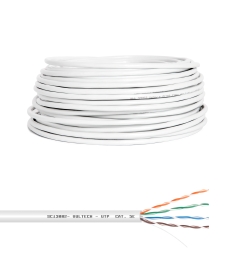 Matassa LAN da 100 metri, compatibile con gli standard di Categoria Cat. 5, realizzata con conduttori rivestiti in alluminio e rame a traccia.