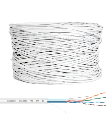 Completamente schermata (FTP) e totalmente compatibile con gli standard di Categoria 5e, la matassa VulTech® 305 metri è realizzata con conduttori rivestiti in alluminio e rame a traccia che permettono ripetute piegature senza rischi di danneggiamento, prolungando così la vita del cavo.da 4 coppie di cavi cablati + filo di massa, questo cavo è consigliato per la realizzazione di impianti Ethernet Gigabit 10/100/1000, collegamento di impianti di video sorveglianza, ecc...