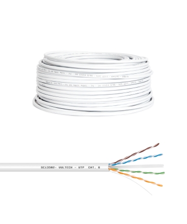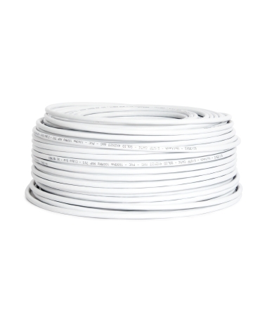 Matassa LAN da 50 metri, compatibile con gli standard di Categoria Cat. 6, realizzata con conduttori rivestiti in alluminio e rame a traccia.