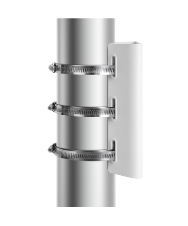 Presenta 3 linguette regolabili per il fissaggio su pali con diametro minimo 67 mm e massimo 127 mm.