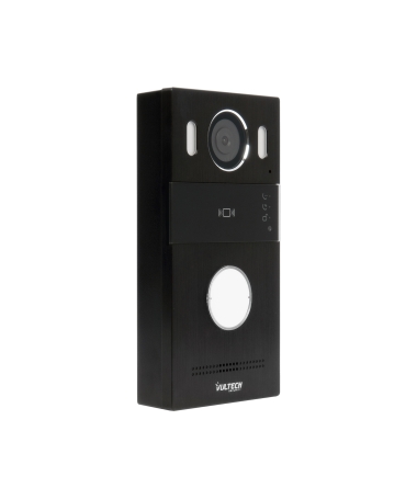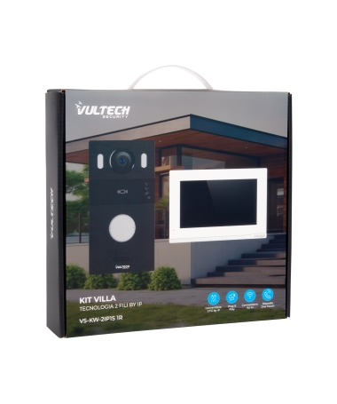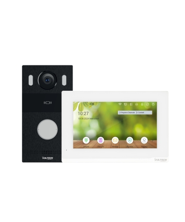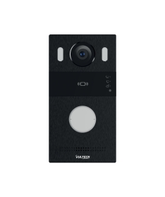 Il kit VS-KW-2IP1S R1 con tecnologia 2 fili by IP è composto da pulsantiera esterna e monitor interno con sistema operativo Linux. Tastiera con 1 tasto per la bussata realizzato in alluminio di alta qualità.