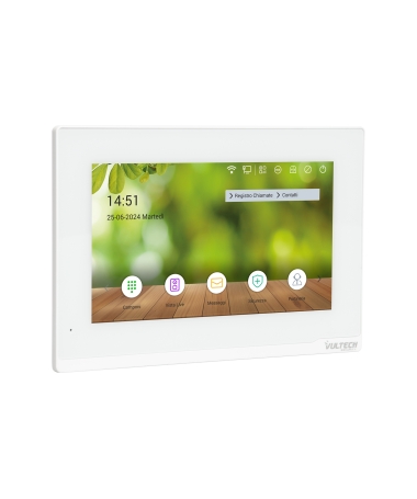 Qualità audio e video superiore: Monitor con schermo touch capacitivo da 7" TFT, ideale per la gestione completa della videocitofonia. Risoluzione elevata (1920 x 1080 pixel) per una visione chiara e definita, con supporto per monitorare fino a 8 IP Cam. Compressione video H.264 per uno streaming fluido, con funzione di cancellazione dell'eco per comunicazioni audio chiare e precise. Con microfono e altoparlante integrati, permette di interagire facilmente con le postazioni esterne e gli altri dispositivi del sistema.